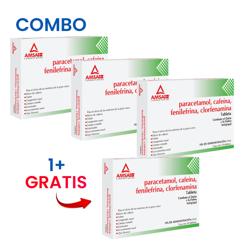 3 MAS 1 CLORFENAMINA-PARACETAMOL-CAFEINA-FENILEFRINA 4/500